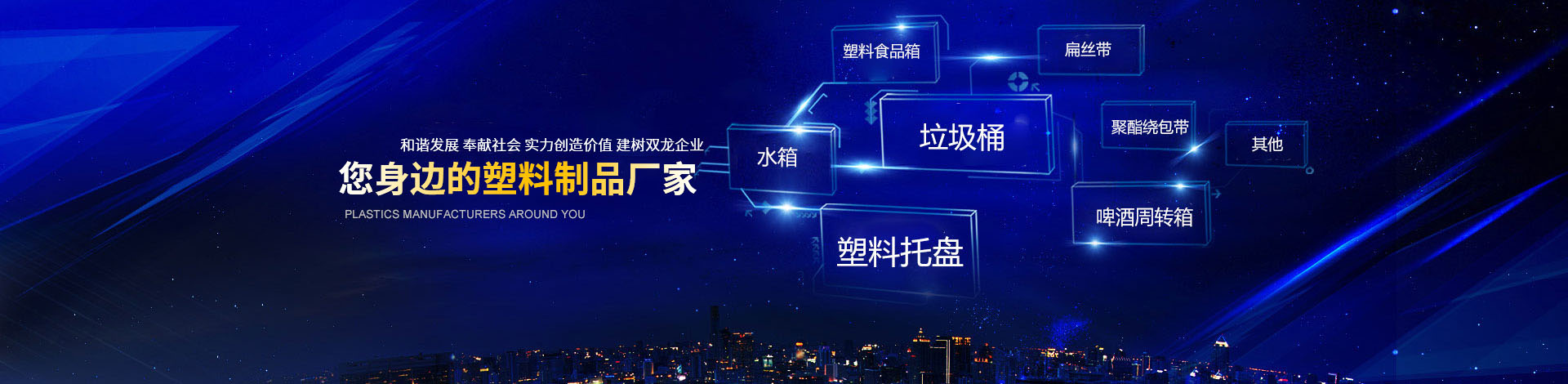 臨沂市雙龍塑料有限公司是專業(yè)塑料托盤生產廠家。公司創(chuàng)建于二零零七年,座落于中國著名的商品批發(fā)城—山東臨沂市,具備便利的物流交通環(huán)境。本公司主要產品:塑料托盤、垃圾桶,水箱; 塑料生活系列產品:塑料桌椅、塑料水桶、塑料方凳等、品種達數(shù)百余個;塑料包裝系列產品,啤酒周轉箱,塑料食品箱、扁絲帶、聚酯繞包帶等; 歡迎廣大國內外客商前來洽談,合作投資!..